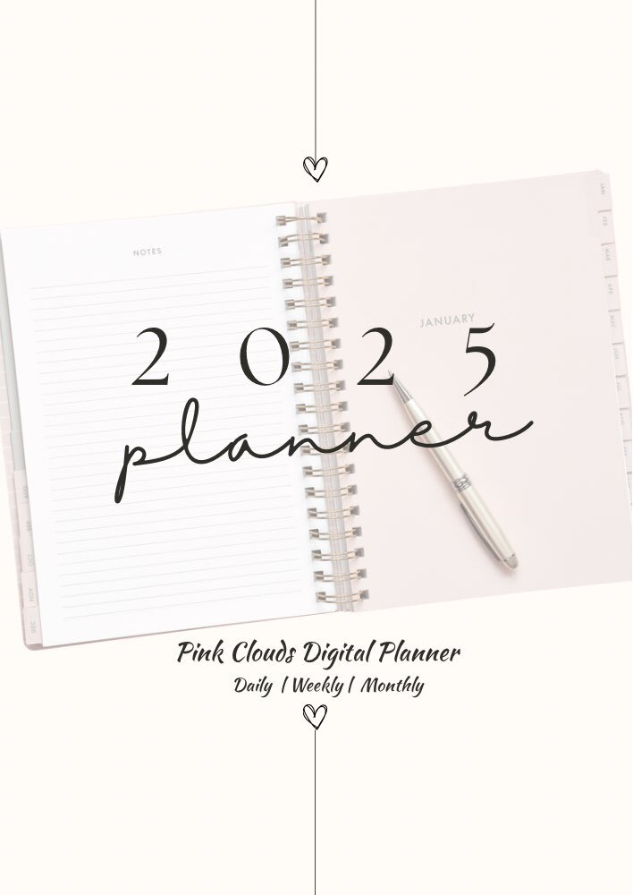 Make 2025 your most organized, peaceful and productive year yet with the Pink Clouds Digital Planner.